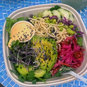 We look forward to serving you in the new Harbin Restaurant dining room soon. In the meantime, enjoy the Dancing Bear Café and Blue Room Coffee Cart. Our menu features tasty, healthful, and predominantly vegetarian fare, with meat and gluten-free options, using organic ingredients when possible.